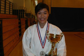 姓 名:楊盈盈 所得獎項:2003年度 誠和會高級組10-12歲女童套拳季軍 2004年度 誠和會高級組11-14歲女童套拳季軍 |